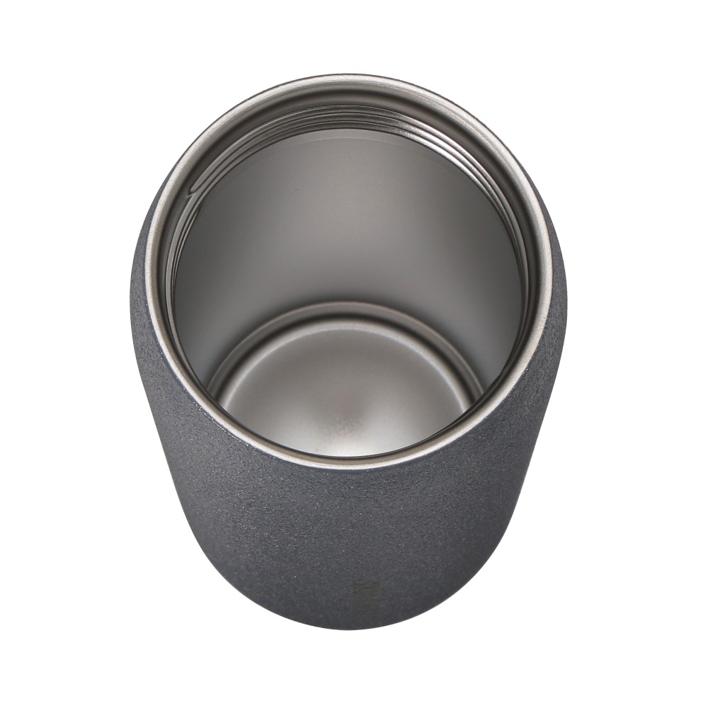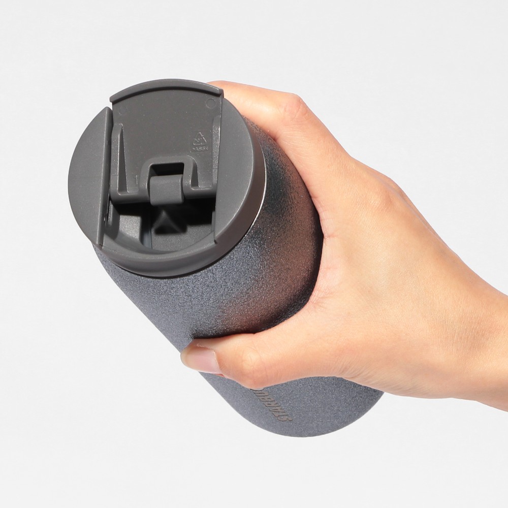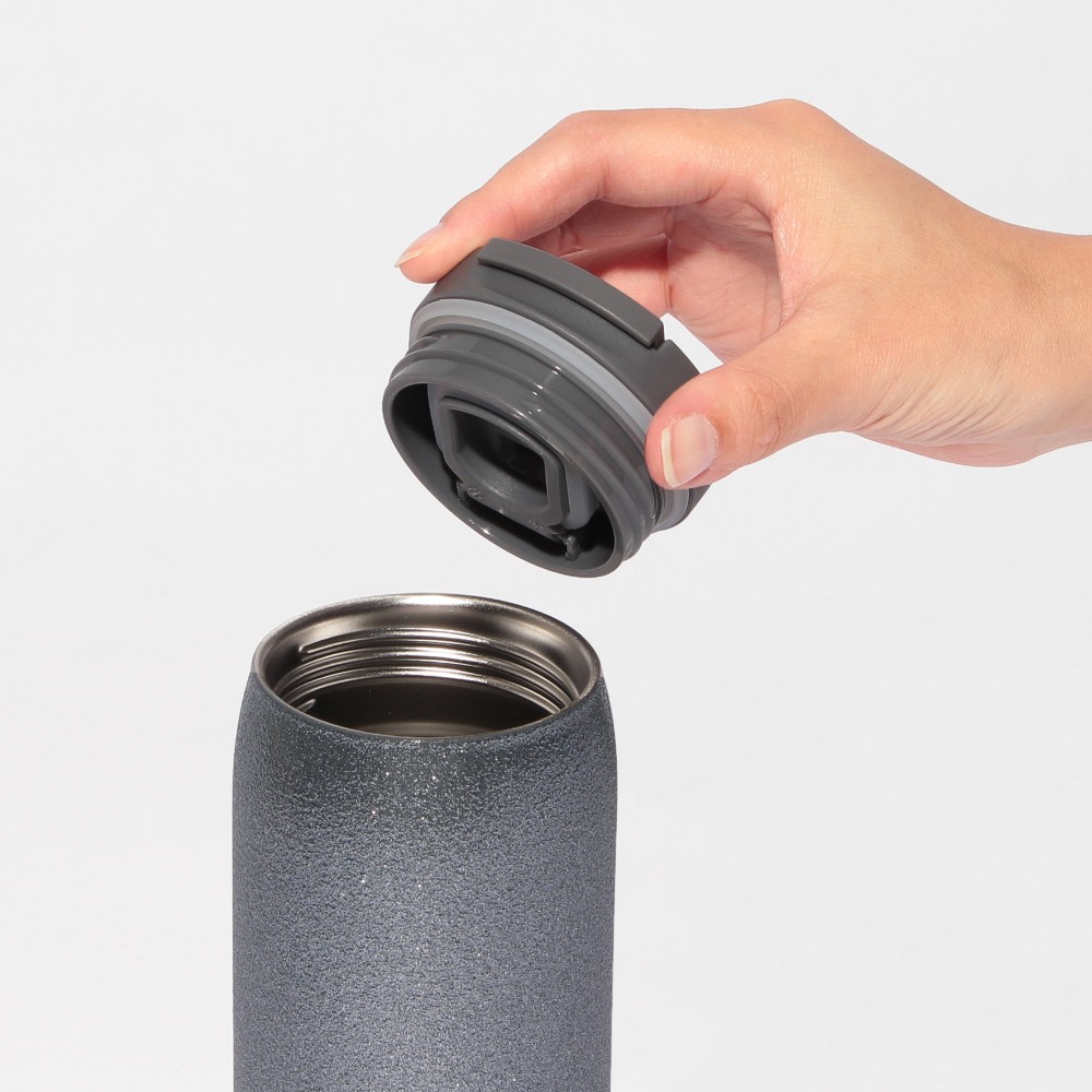 落ち着いたグレーに、繊細なグリッターの輝きをまとったステンレスボトルです。控えめながら上品に光を放ち、スタイリッシュな印象で、缶を思わせる形状も特徴的です。真空二重構造ステンレスで保温・保冷性に優れています。(漏れ防止:あり)