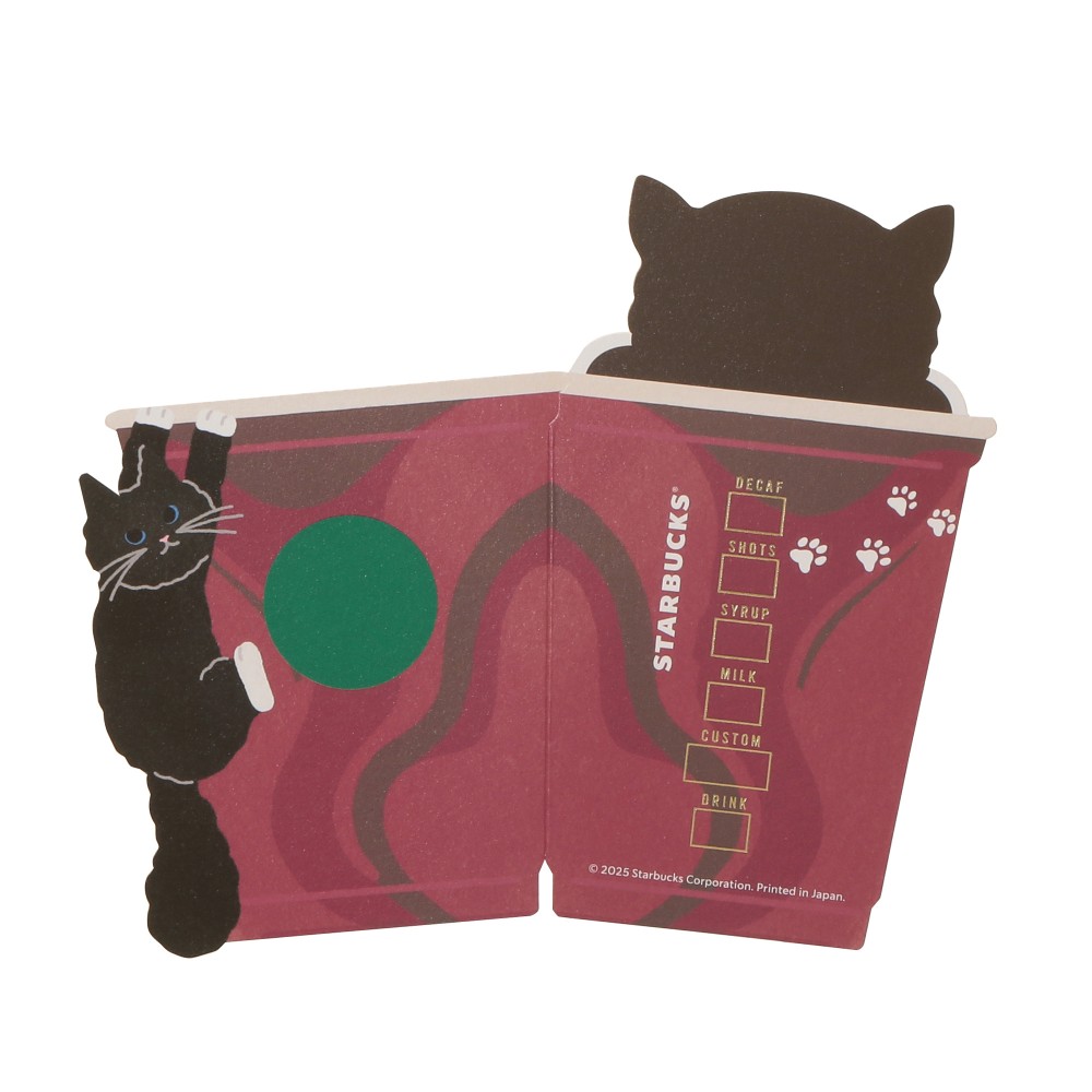 メッセージにドリンクを添えて贈るというコンセプトのドリンク引換券付きメッセージカードです。フラペチーノ®に黒猫がぶら下がったユニークなデザインは、ハロウィンのギフトにぴったりです。