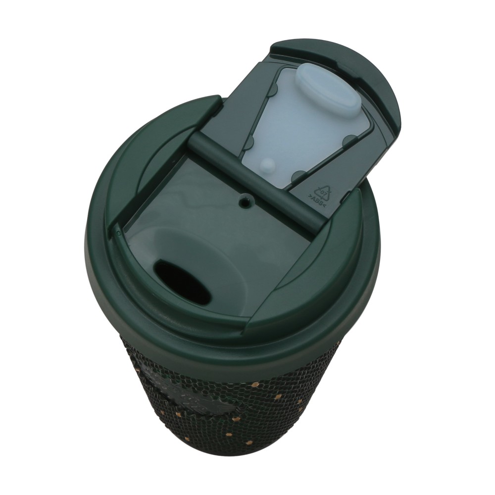 グリーンの中に一部イエローのラインストーンをあしらったきらめく星のようなデザインです。華やかな存在感で、手にするたびに気分が高まります。大人の華やかさと洗練された印象を兼ね備えたアイテムです。真空二重構造ステンレスで保温・保冷性に優れています。