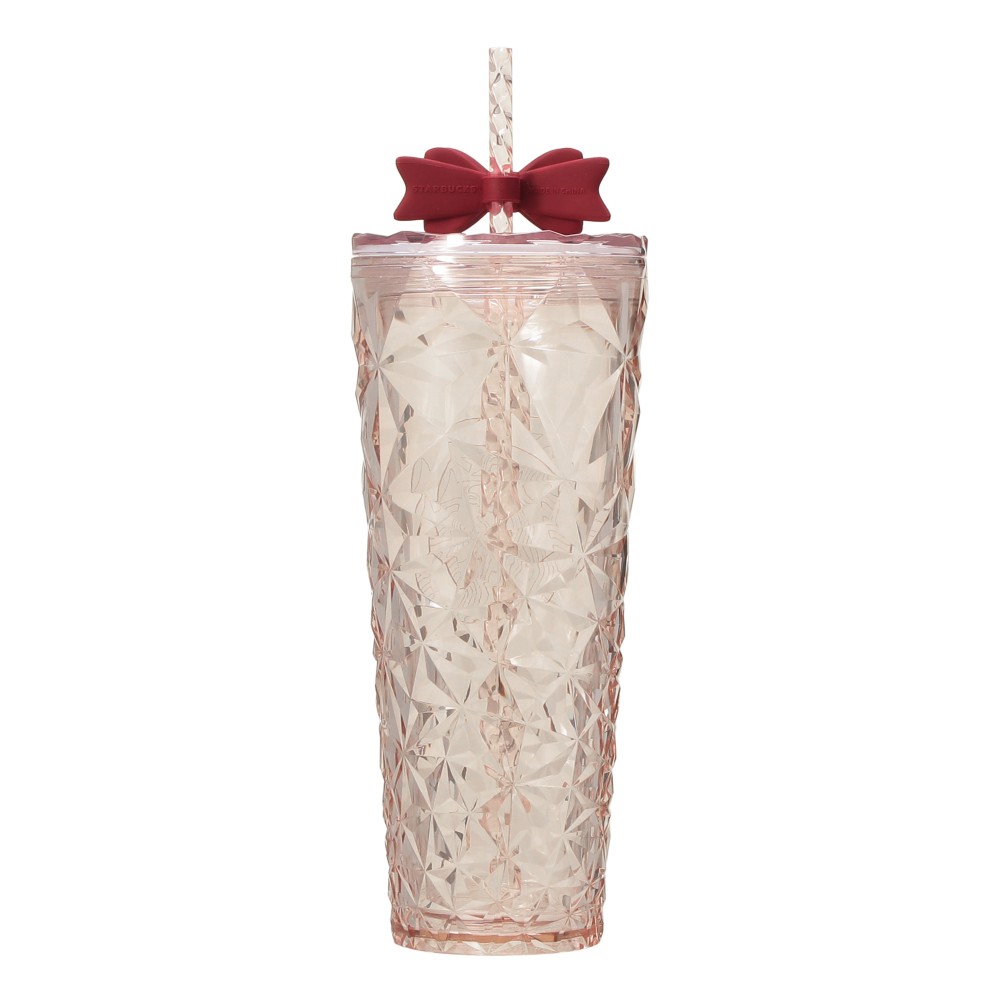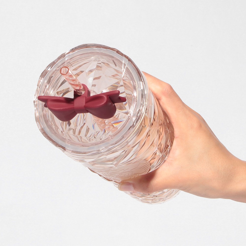 本体には凹凸が施されていて、光を受けるたびにキラキラと輝きます。ストローにはかわいらしいリボンのアクセサリー付きで毎日にときめきを添えてくれるようなデザインです。大容量の710mlサイズで、たっぷりのドリンクを楽しめます。