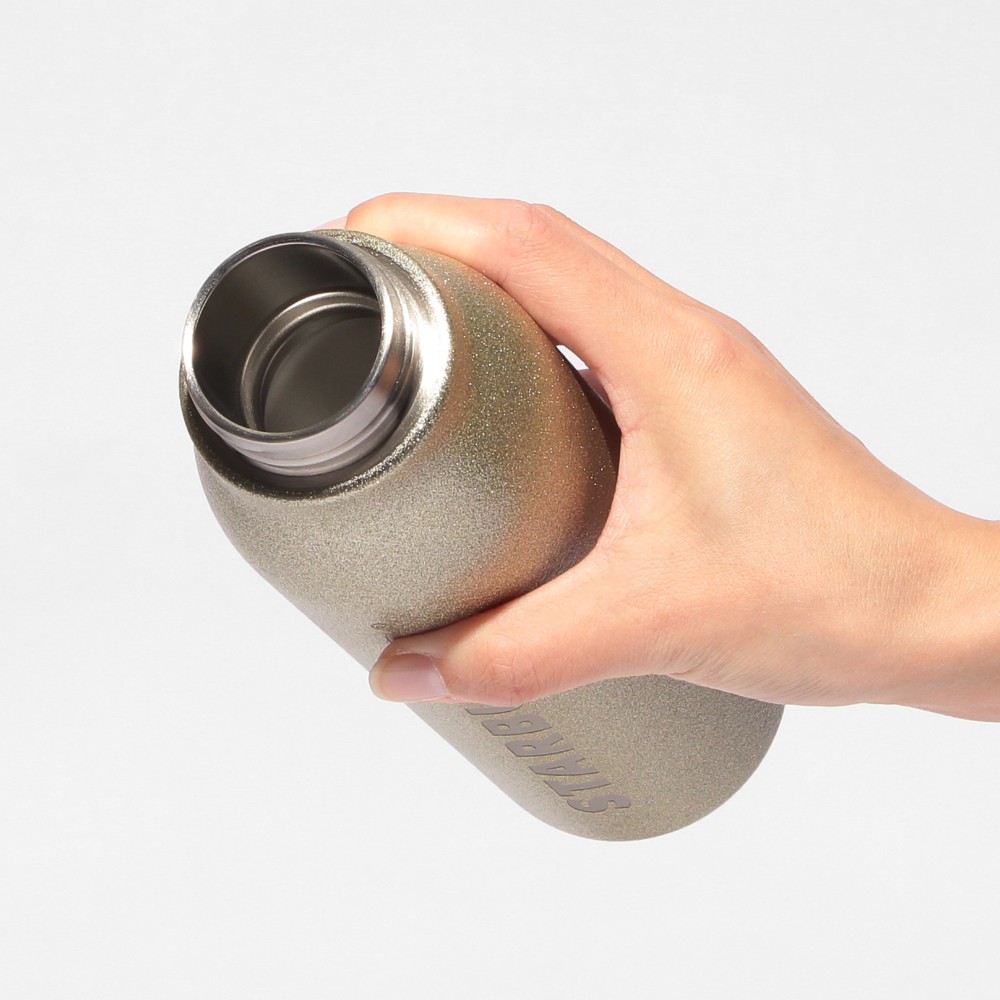 繊細なゴールドグリッターの輝きをまとったステンレスボトルです。控えめながら上品に光を放ち、スタイリッシュな印象です。STARBUCKSのロゴがレーザー加工で表現されています。真空二重構造ステンレスで保温・保冷性に優れています。(漏れ防止:あり)