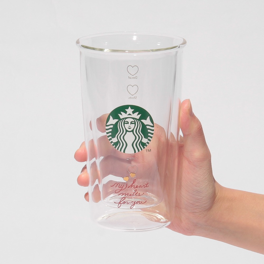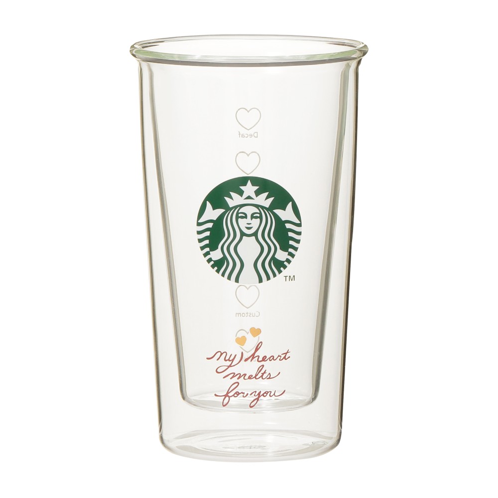 表面にはシンプルなレターデザインが印象的で、裏面のカスタマイズボックスはハートになっています。シンプルに中に入れるドリンクを引き立てる、季節を問わず長く使えるデザインが特徴的です。