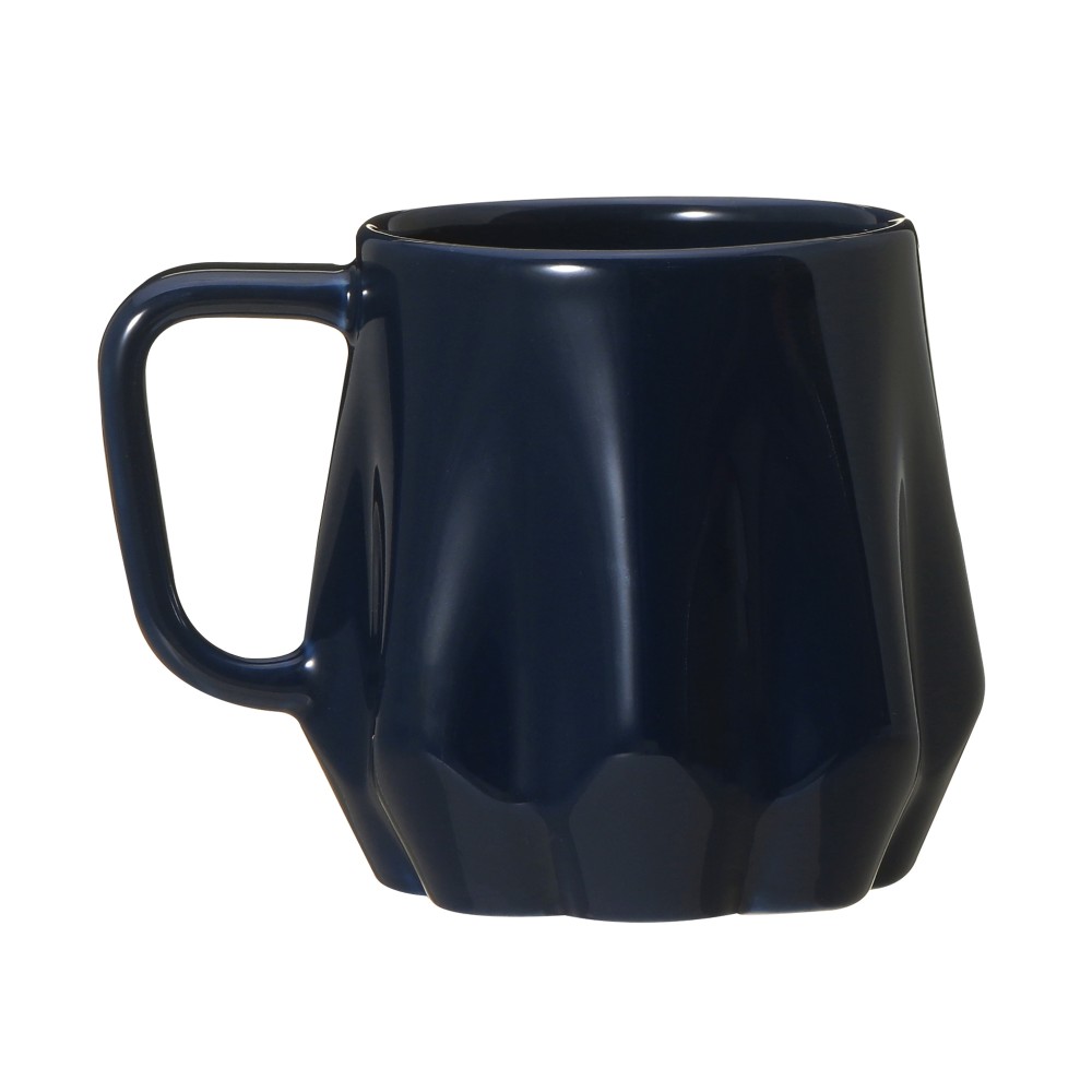 舞台上にあるベルベットの幕をイメージした磁器製マグカップ。ドレープのデザインで、幕の揺らぎを表現しています。シックでつややかなネイビーブルーがホリデーシーズンのコーヒーシーンに彩りを添えます。
