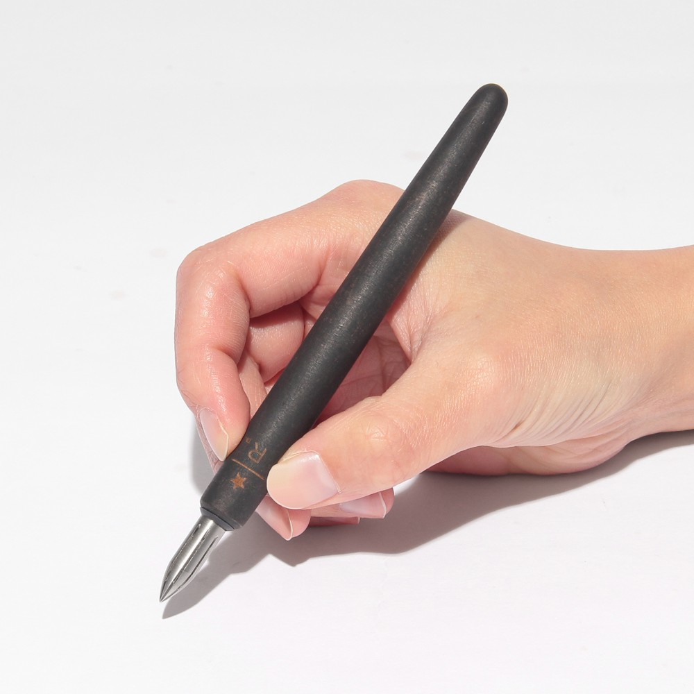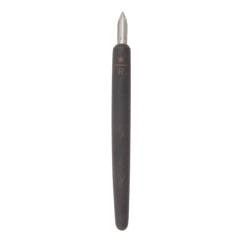 スターバックス リザーブ® ロースタリー 東京が提案する「コーヒーと共に過ごすデスクワークシーン」にちなんだつけペンミニホルダー。東京蔵前に店舗をかまえる文具店「カキモリ」が製作しました。国産の楓の木に黒い塗装を施したペン軸に、さまざまな線幅が出せるステンレス製のペン先(Metal nib ステンレス) を取り付けました。筆箱にもおさまりの良い短いタイプ。スターバックス リザーブのロゴが刻印されています。