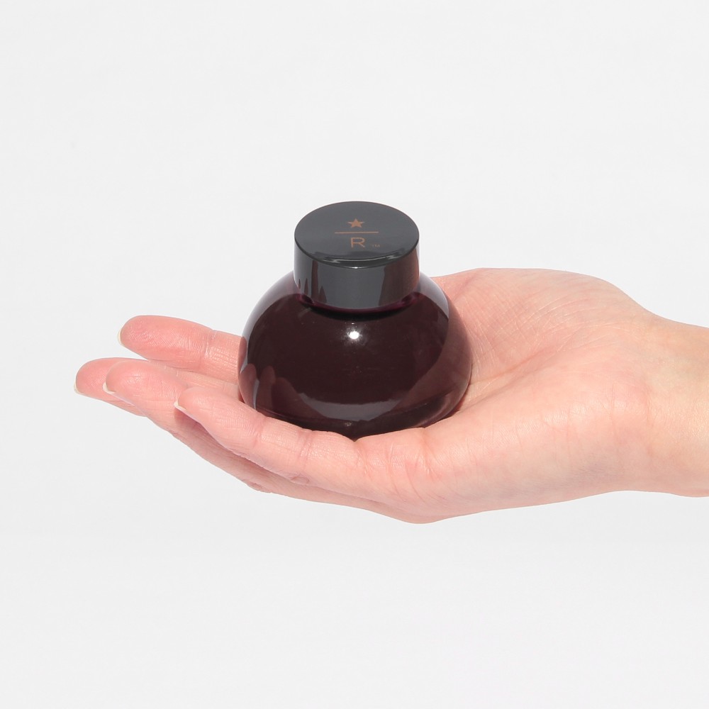 スターバックス リザーブ® ロースタリー 東京が提案する「コーヒーと共に過ごすデスクワークシーン」にちなんだ万年筆用顔料インク。東京蔵前に店舗をかまえる文具店「カキモリ」が製作しました。目黒川の夜桜をイメージして、インクの色を一から調合したダークピンクです。万年筆やつけペンと一緒にギフトにするのもおすすめです。