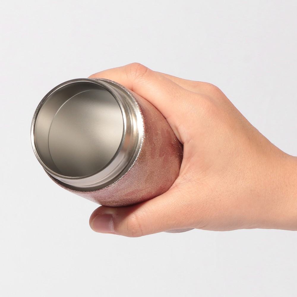 フタを含む全面にキラキラと輝くグリッター加工を施したステンレスボトルです。本体部分にはグリッターの中に桜を描きました。STARBUCKSロゴは縦にレーザー加工で表現しています。真空二重構造ステンレスで保温・保冷性に優れています。(漏れ防止:あり)