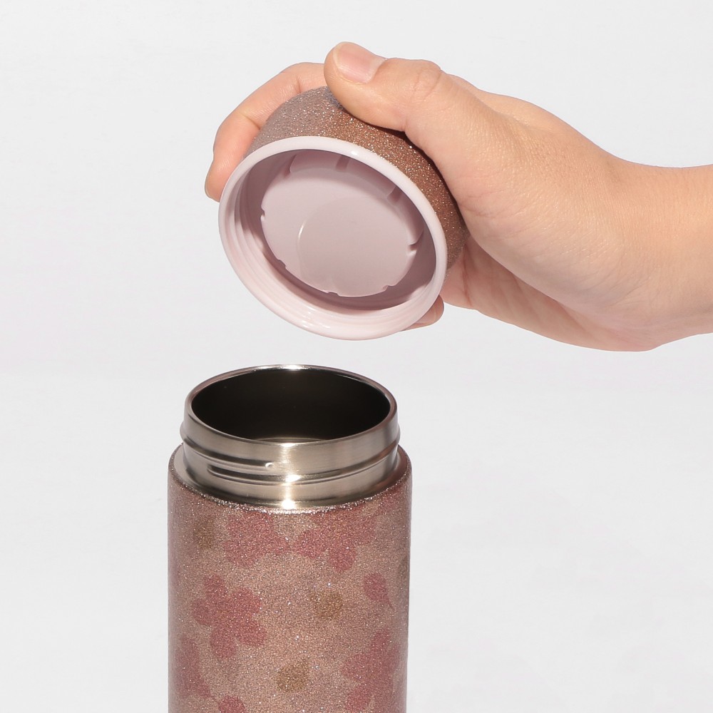 グリッターの中に桜を描いたステンレスボトル