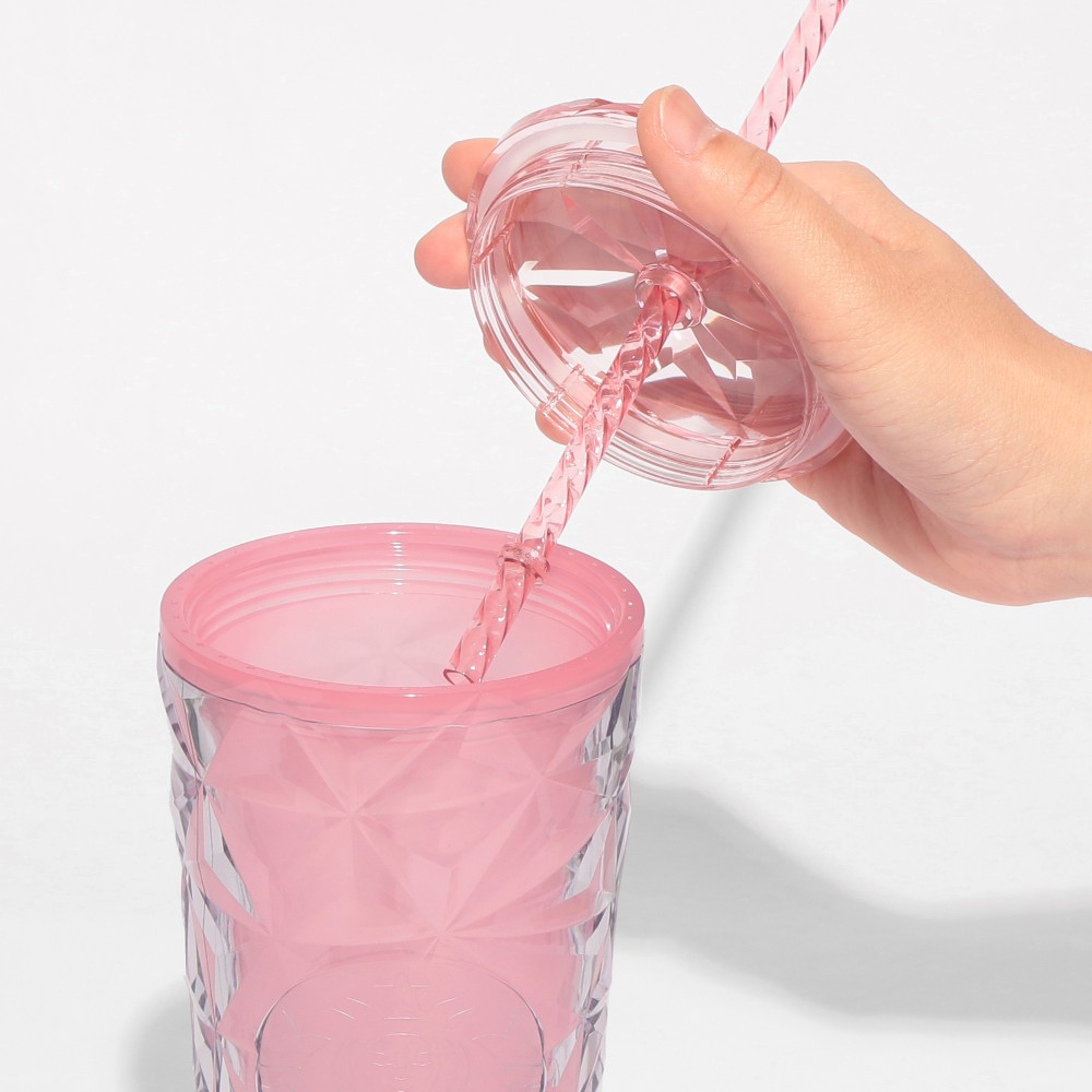 冷たい飲み物を注ぐと、本体の色が鮮やかな濃いピンクに変化します。表面の繊細な凹凸が光を受けて、キラキラと美しく輝きます。桜モチーフのストローキャップは取り外し可能で、シーンに合わせて自由にお使いいただけます。