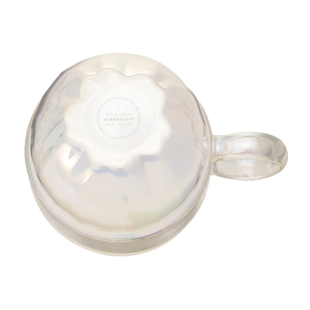 ラスター加工が、光の反射によって虹色のような複雑な色合いを生み出すので、見る角度によって色味が少し変わります。底面はよく見ると桜の花びらの形になっています。本体のプリント加工は桜のアウトラインとワードロゴのみで、シンプルで落ち着いた印象となっております。