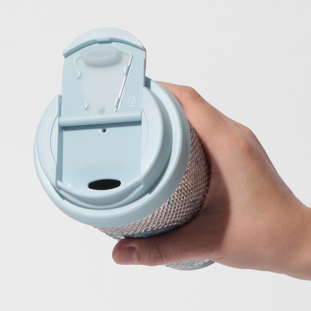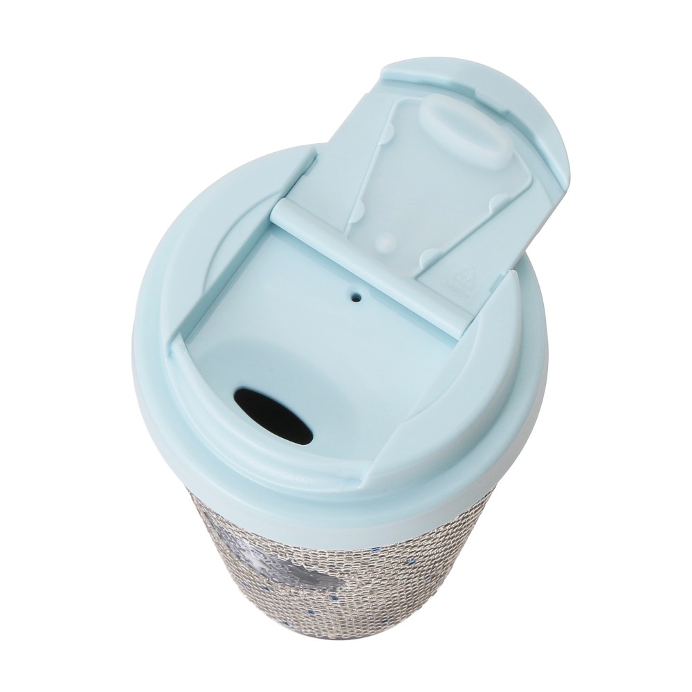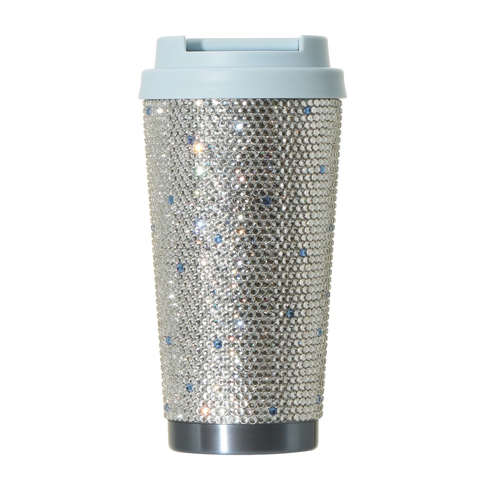 クリアのラインストーンで敷き詰めた中に一部淡いブルーのラインストーンをあしらいました。華やかな存在感で、手にするたびに心弾むようなデザインです。大人の華やかさと洗練された印象を兼ね備えた、特別な一杯を演出するアイテムです。真空二重構造ステンレスで保温・保冷性に優れています。
