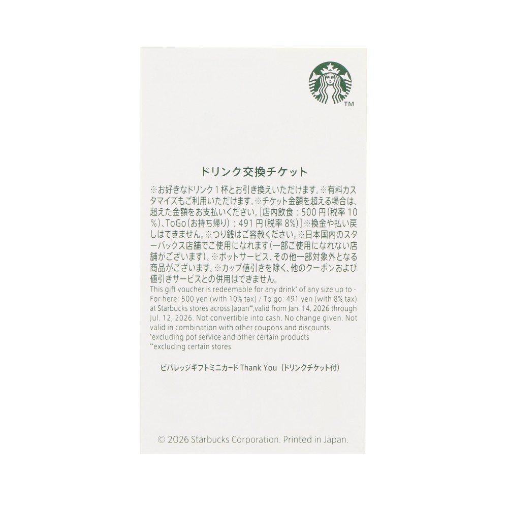 [1月12日20時オンラインストア先行発売]ビバレッジギフトミニカードThank You(ドリンクチケット付)