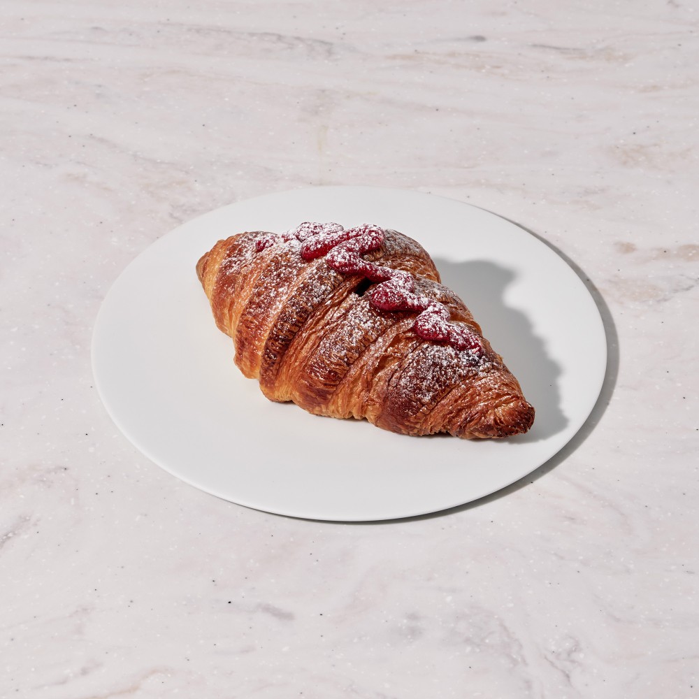 風味豊かな発酵バターを織り込んで焼き上げたサクサクのコルネッティに、なめらかなチョコレートクリームを絞り、甘酸っぱいラズベリージャムを重ねて華やかに。赤と白のコントラストが、ホリデーのぬくもりを感じさせます。