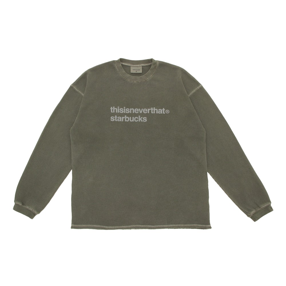 [4月28日オンラインストア発売]thisisneverthat starbucks L/S ワッフルTシャツ カーキ