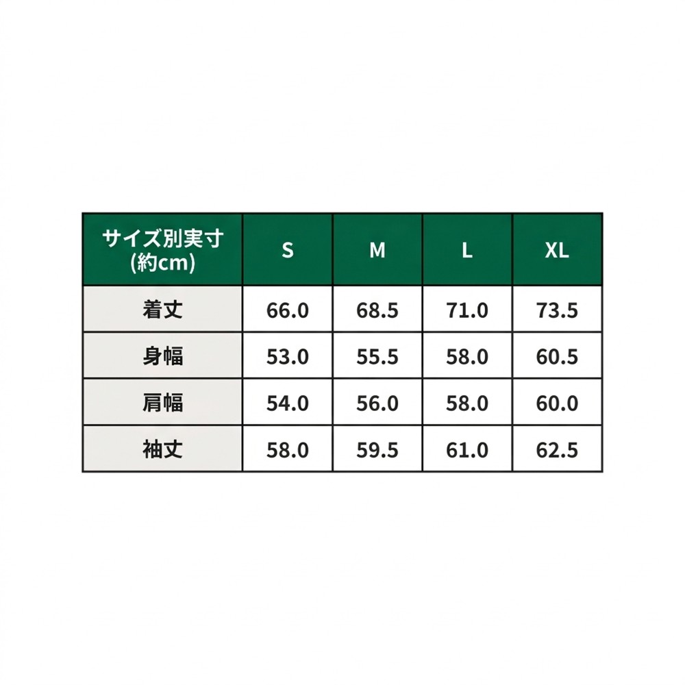 M 着丈:68.5cm,身幅:55.5cm,肩幅:56.0cm,袖丈:59.5cm