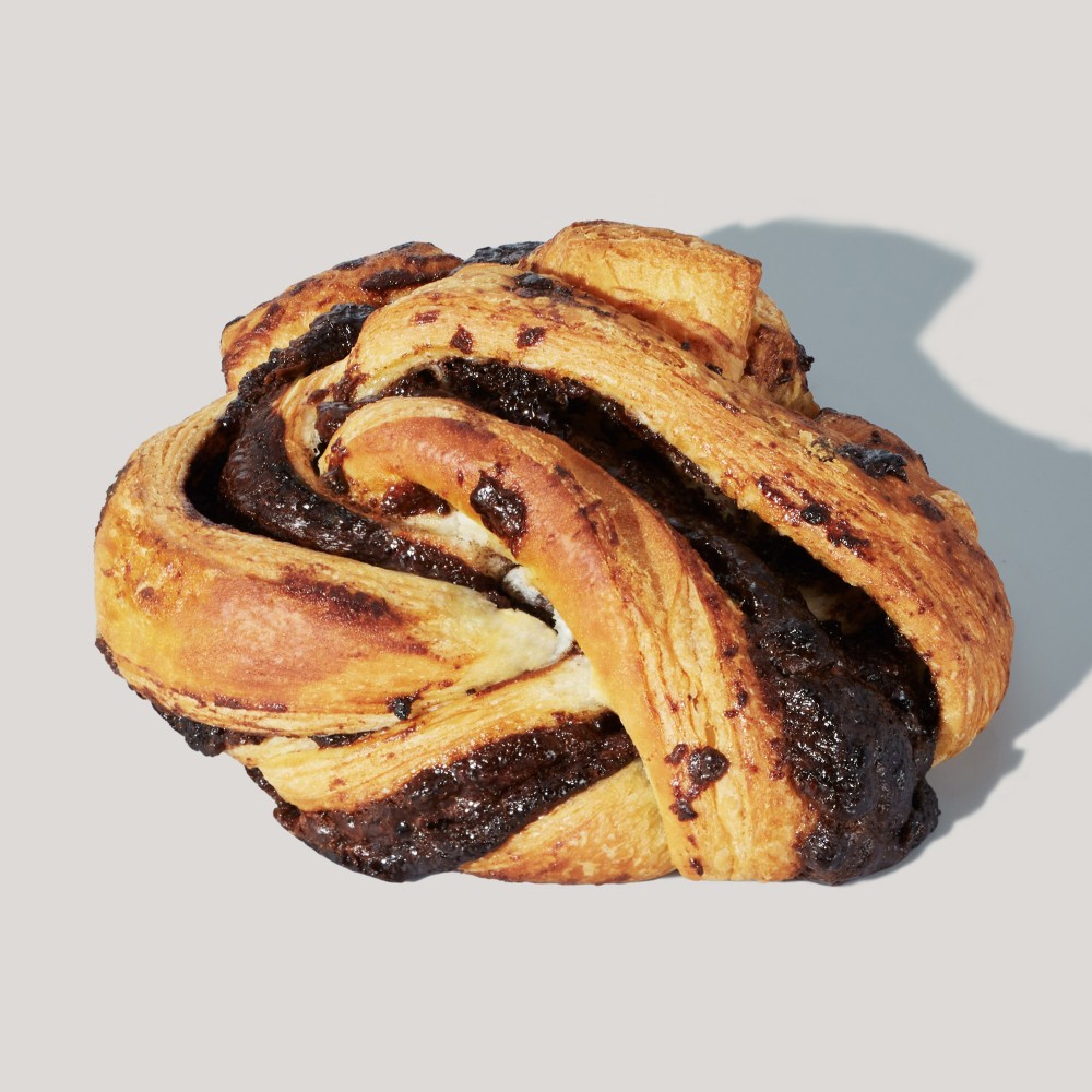 サクサクのデニッシュ生地にチョコレートフィリングを挟み、どこを食べてもチョコレートのリッチで濃厚な味わいを楽しめるよう、渦巻き状に仕上げました。温めることで、サクサクの食感が際立ち、チョコレートがとろけてより美味しく食べることができます。