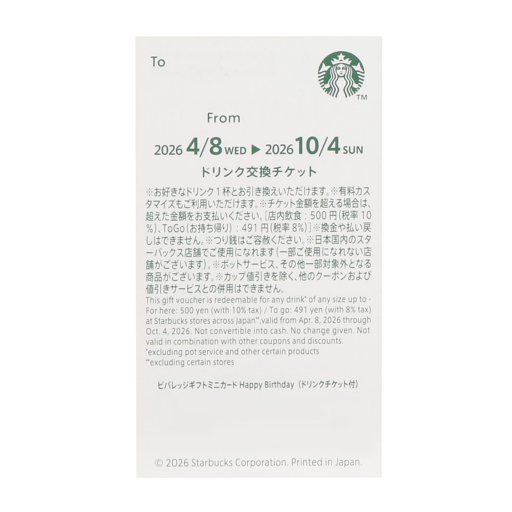 [4月7日20時オンラインストア先行発売]ビバレッジギフトミニカードHappy Birthday(ドリンクチケット付)