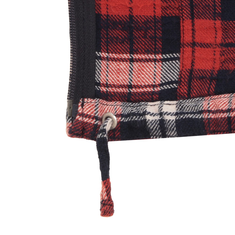 このフードブルゾンには、ケニアを象徴する民族衣装をインスピレーションに制作した4種類のチェックから成るクレイジーパターンを採用。絶妙なカラーバランスで構成しました。