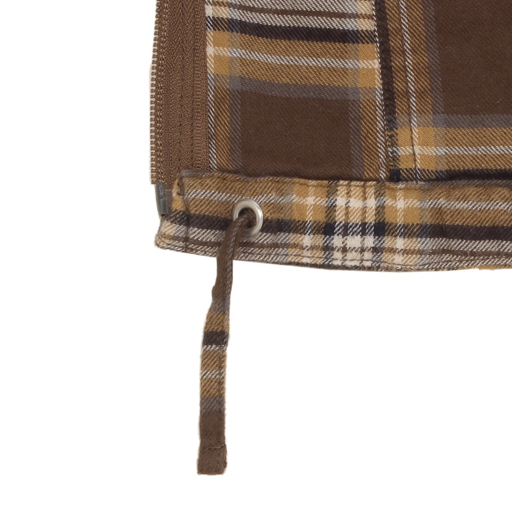 このフードブルゾンには、ケニアを象徴する民族衣装をインスピレーションに制作した4種類のチェックから成るクレイジーパターンを採用。絶妙なカラーバランスで構成しました。