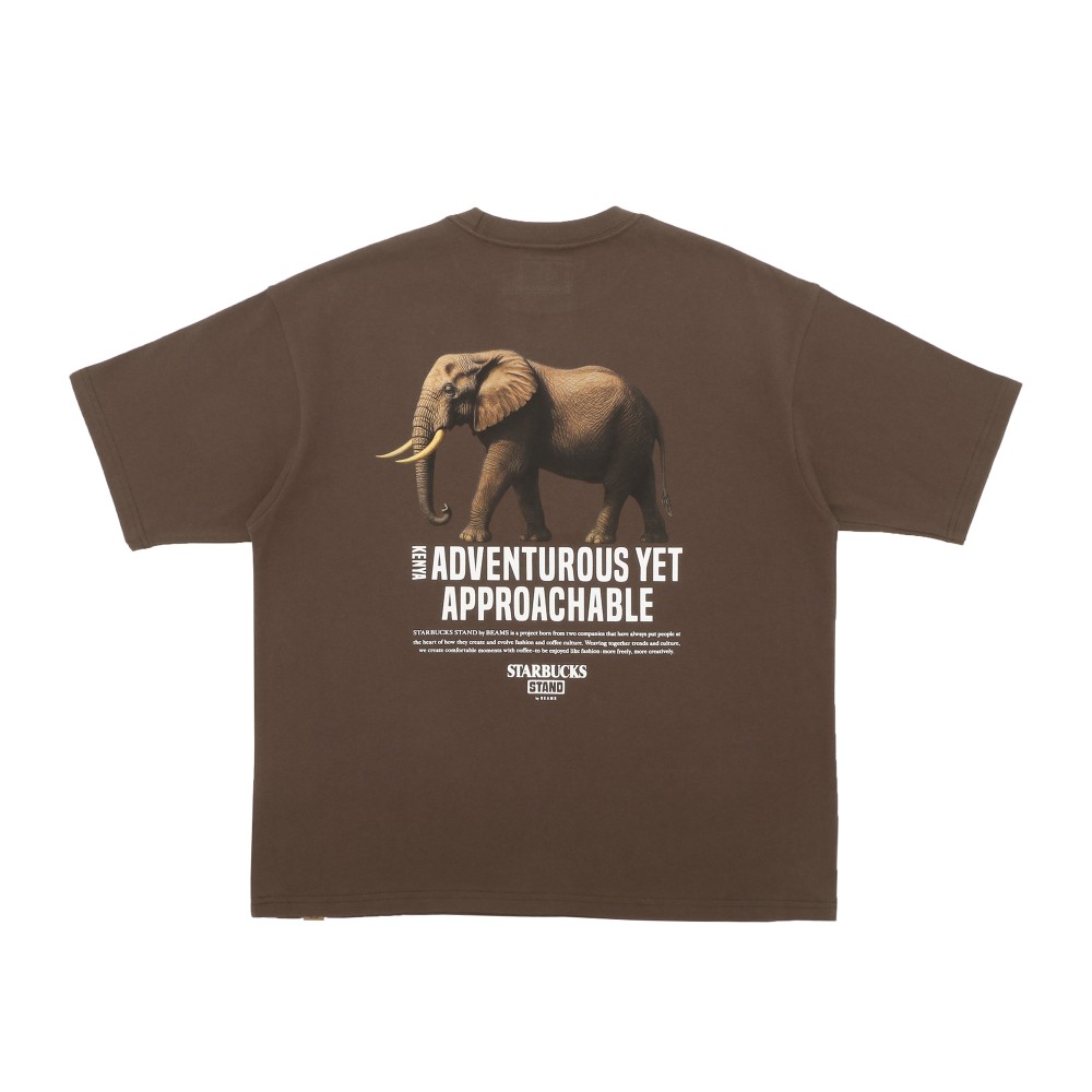 [12月12日10時発売]STARBUCKS STAND by BEAMS アニマルプリントTシャツ エレファント ブラウン