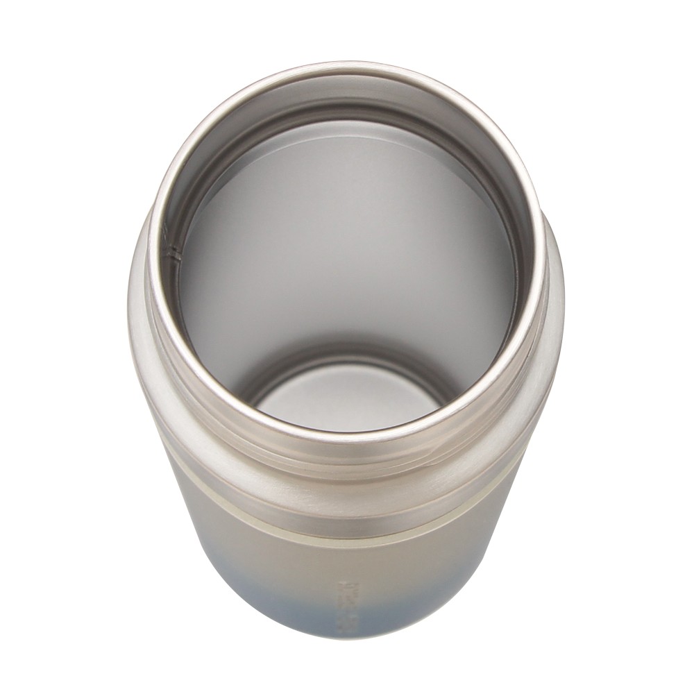 ブルーとアイボリーのグラデーションが優しい春の青空を思わせるデザインです。リッドに付属するフックに指を通してボトルを持ち運ぶことができるため携帯にも便利なステンレスボトルです。真空二重構造ステンレスで保温・保冷性に優れています。(漏れ防止:あり)